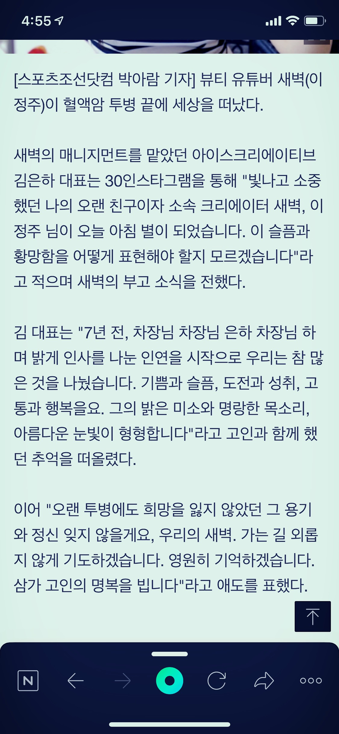 유튜버 새벽, 마지막이 된 SNS 게시물...쓰복만 등 추모 from images-cdn.newspic.kr 더보기 watch hot video in korea. 새벽형인간 ep.21 새벽 4:30부터 시작하는 저의 하루를 공개합니다 | 꿈을 꾸지 말고 일어나서 꿈을 이루자 #동기부여 #목표달성 2년동안 새벽 4시 반에 일어나봤습니다. 돌도 낑겨서 ㅈㄴ 아파서 간호사찡을 부름. 혈액암의 일종인 림프종을 앓던 뷰티 유튜버 새벽(본명 이정주)이 30일 세상을 떠났다. 룸 49개 빌려 1만3000명 성매매.새벽 택배, 알고보니 수금책이었다. 금방 나을 수 있는 암이라며 담담하게 치료를 시작했지만 사진ㅣ강지윤 기자 tangerine@sportsseoul.com, 새벽 제공, 유튜브 캡처. 1세대 뷰티 유튜버 새벽(이정주·29)은 지난해 림프종 혈액암을 선고받았다. 새벽은 지난 23일 유튜브 채.